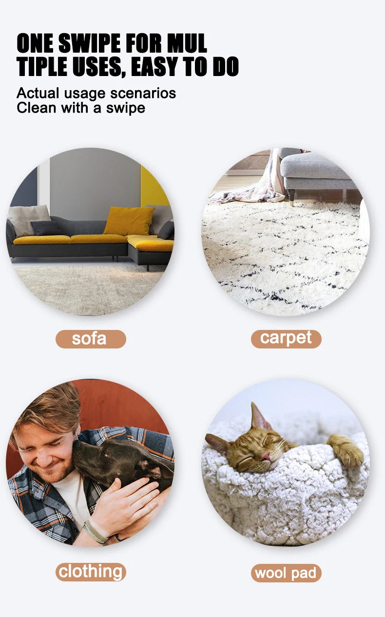 Widely 5 widely amplamente uso:O removedor de pêlos do animal de estimação é apropriado para o cabelo do gato ou do cão, cuja forte capacidade limpa pode remover o cabelo do animal de estimação eficazmente do sofá, da cama, do tapete, do pano, etc.